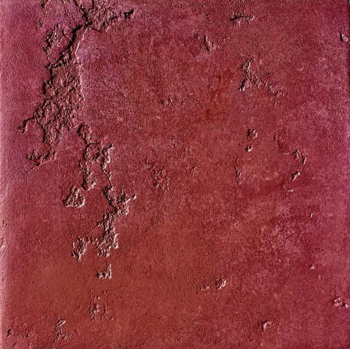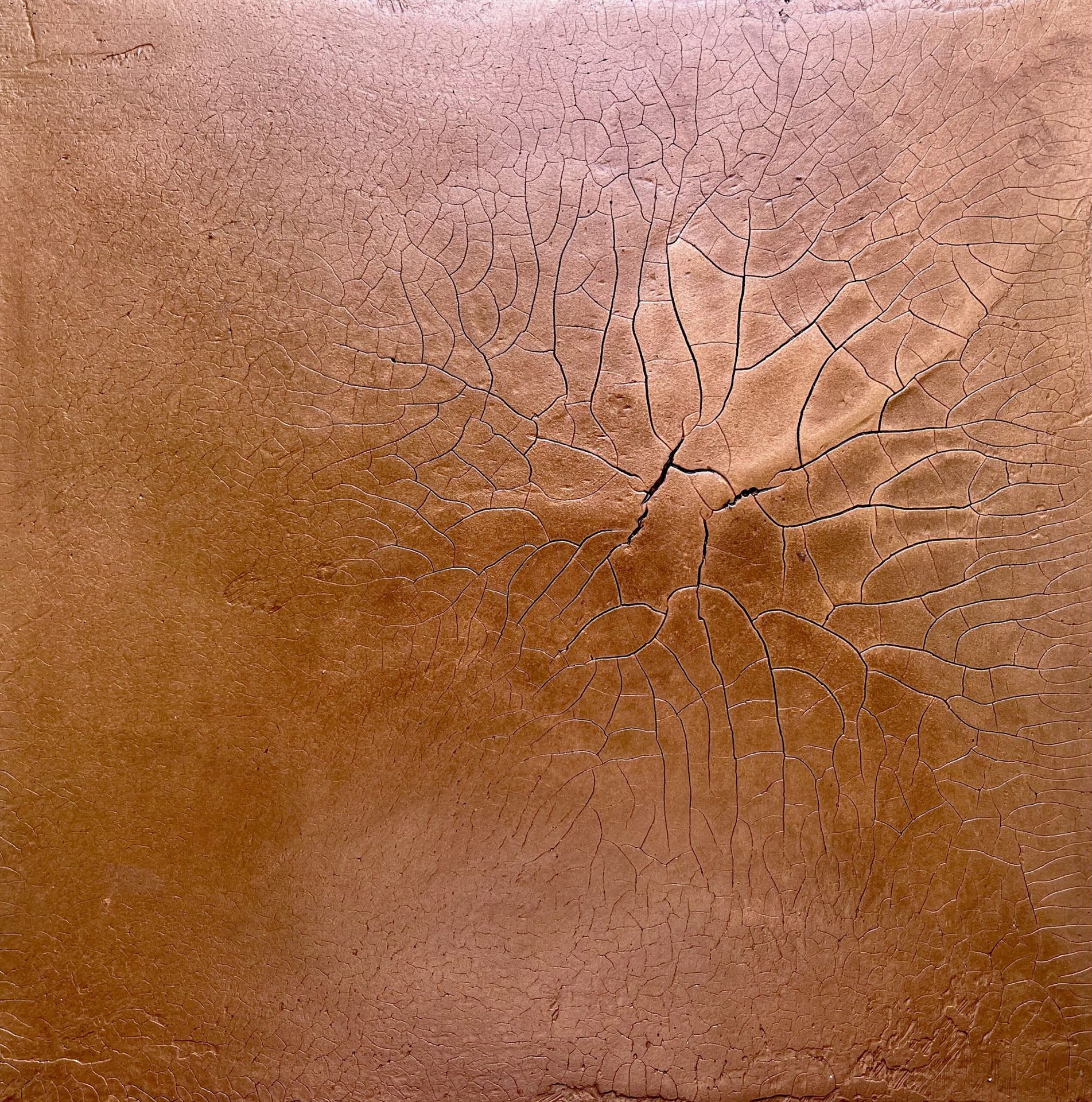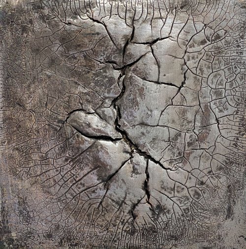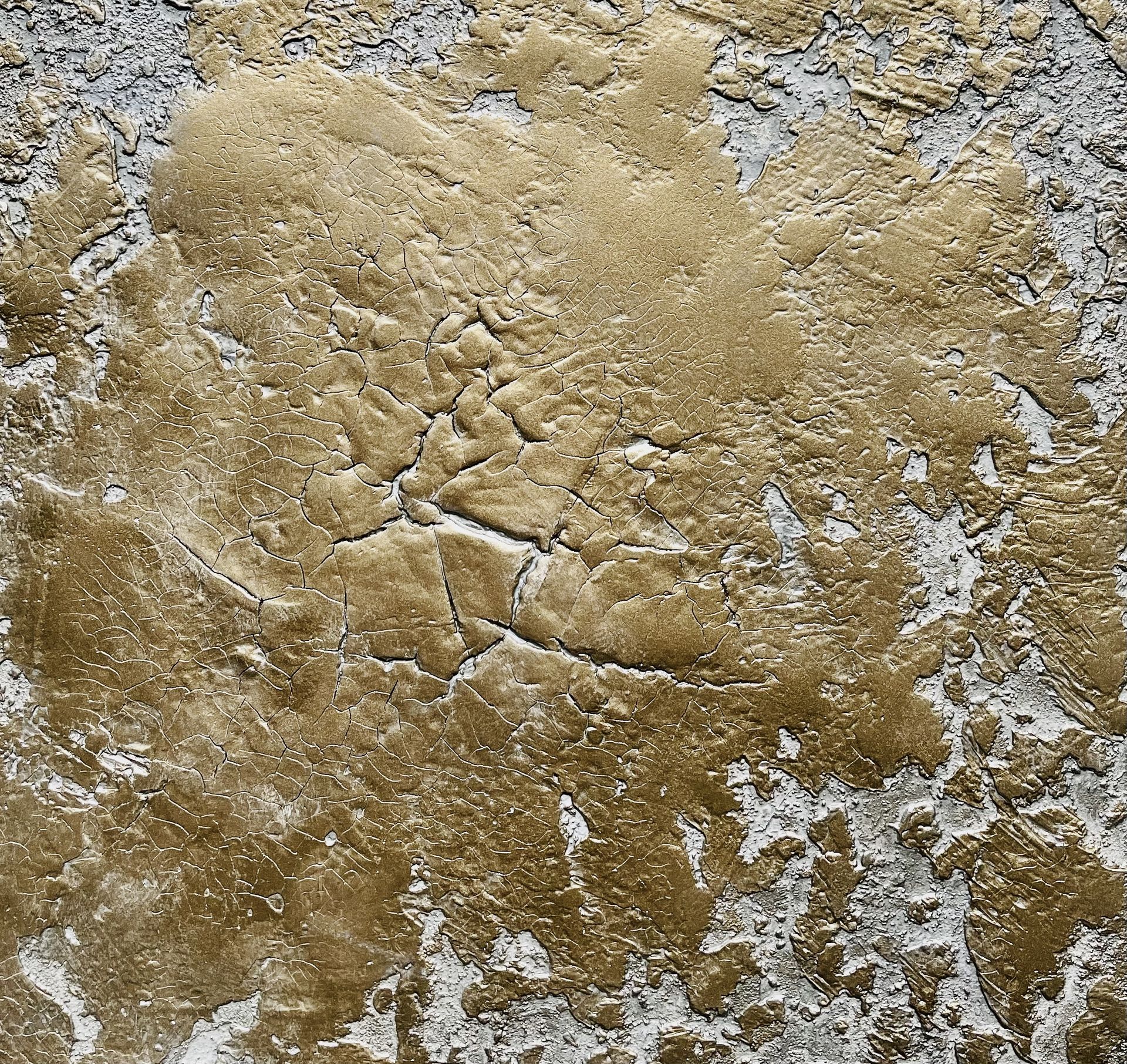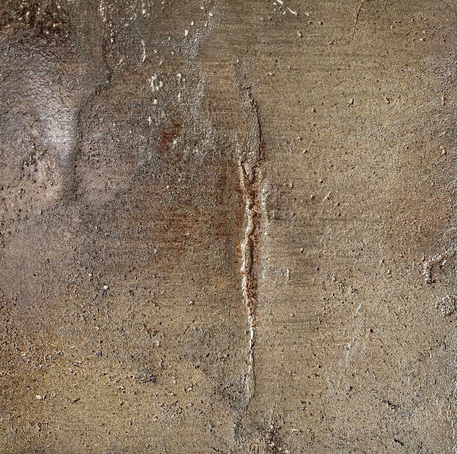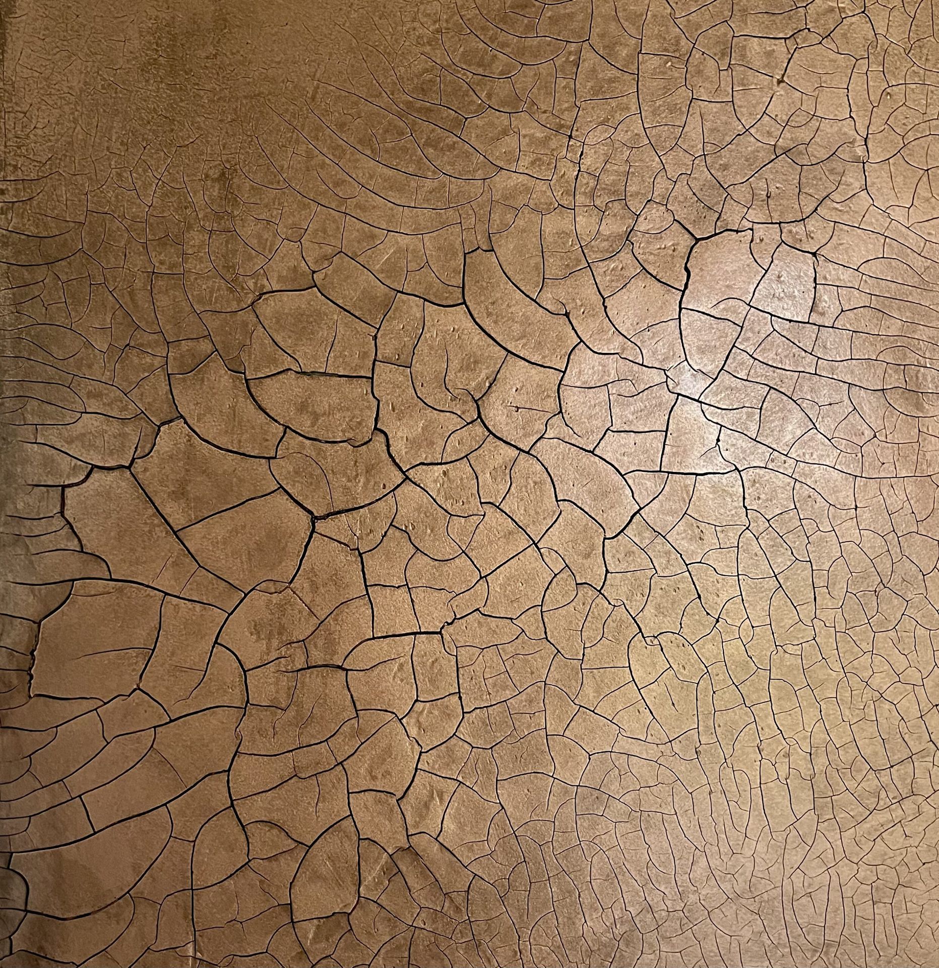 Die durch Risse und Brüche unwillkürlich entstandene Oberfläche entwickelt zusammen mit den darauf applizierten Farbschichten Oberflächenmuster, die einzigartiger nicht sein können.