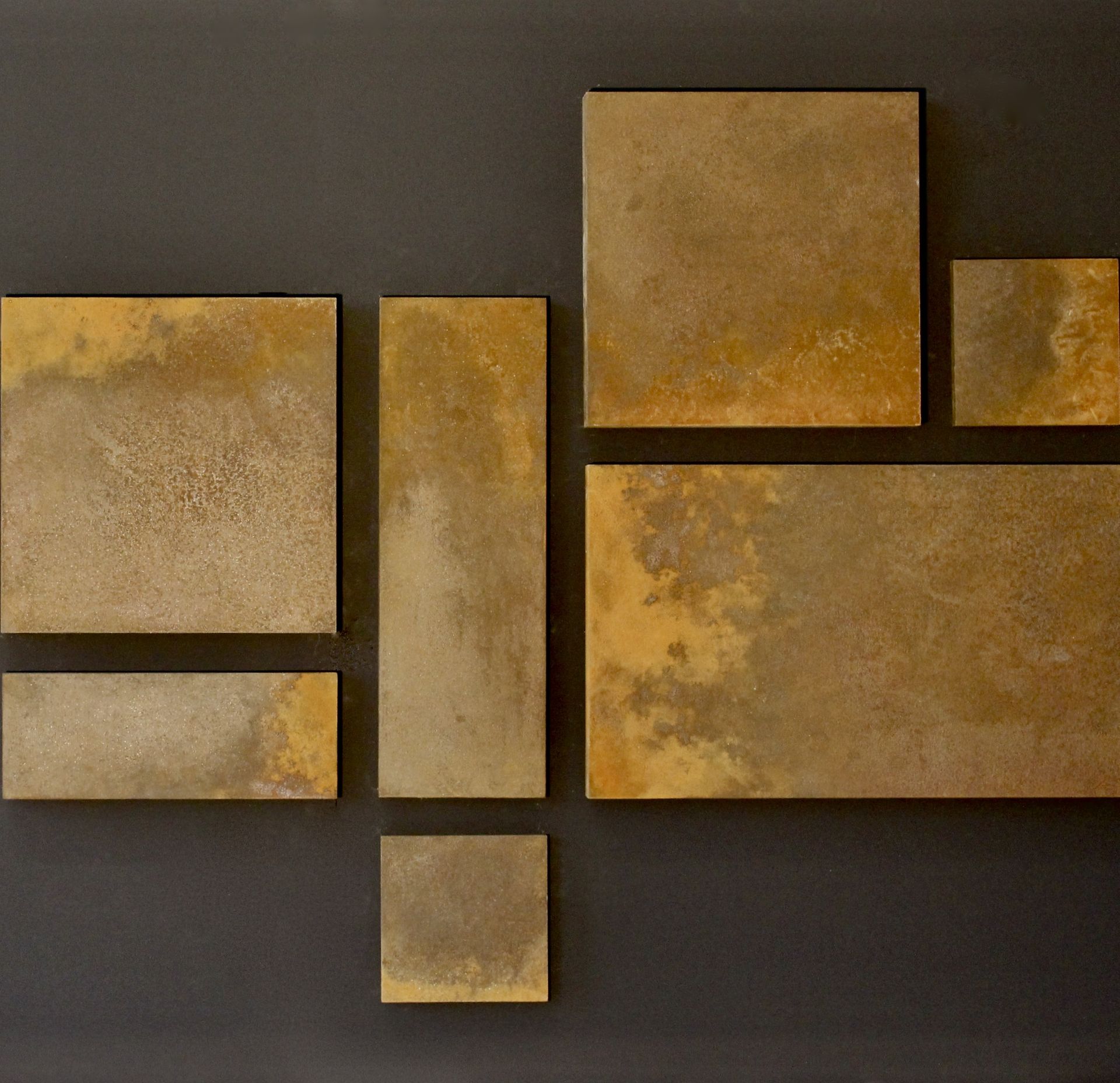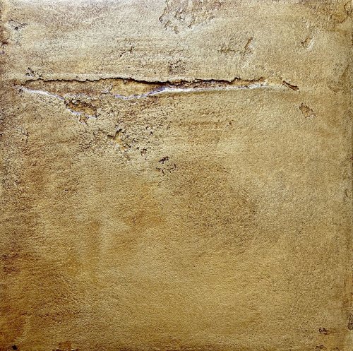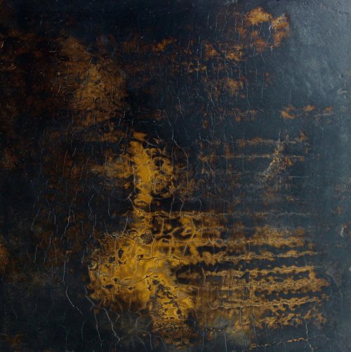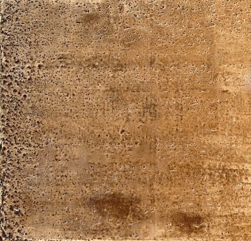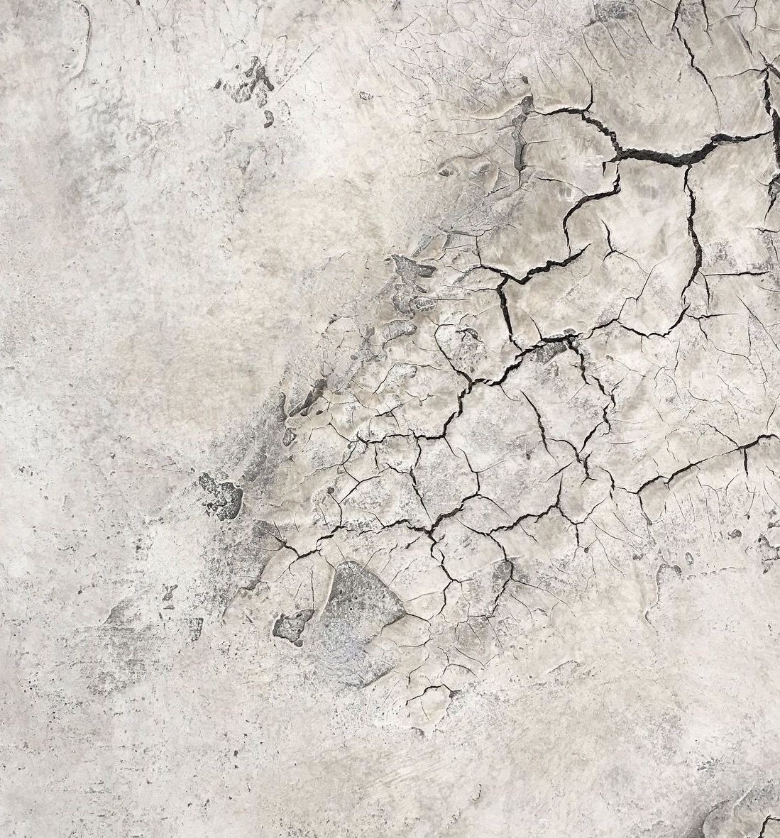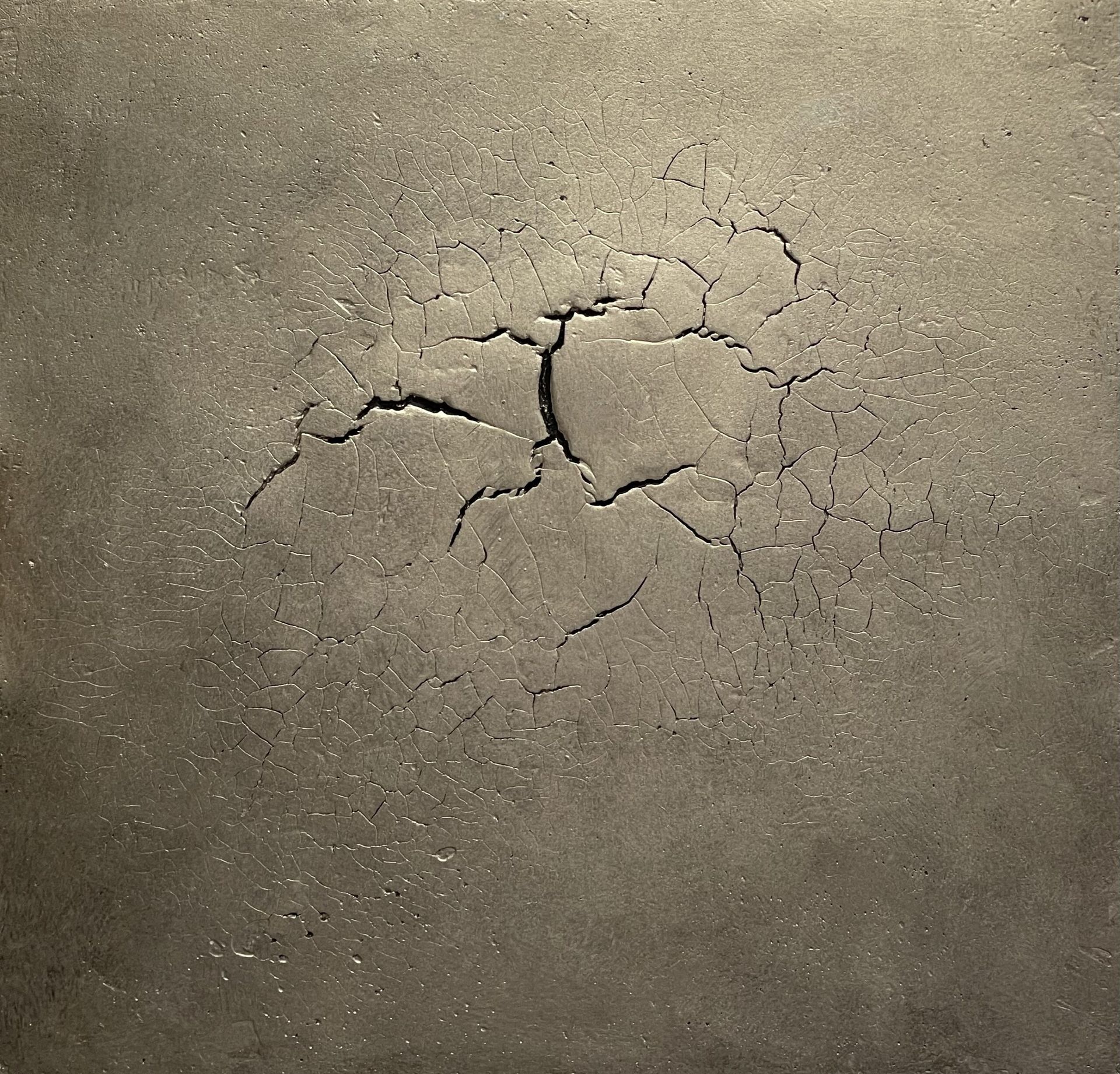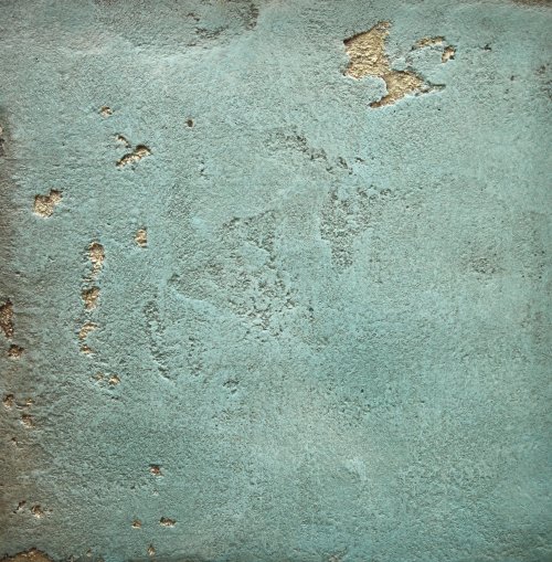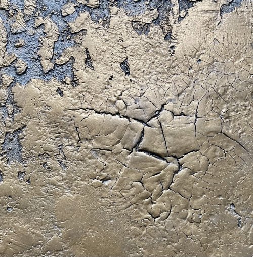 Die durch Risse und Brüche unwillkürlich entstandene Oberfläche entwickelt zusammen mit den darauf applizierten Farbschichten Oberflächenmuster, die einzigartiger nicht sein können.