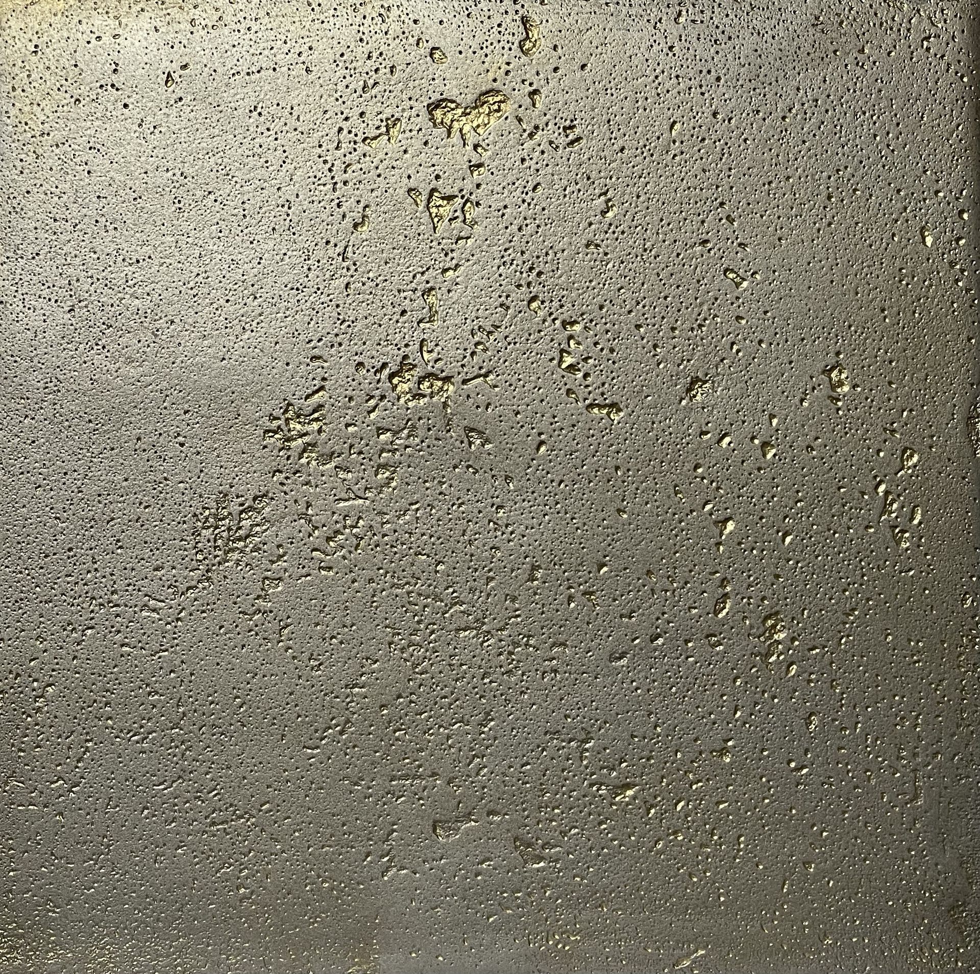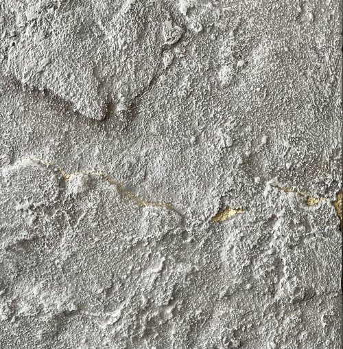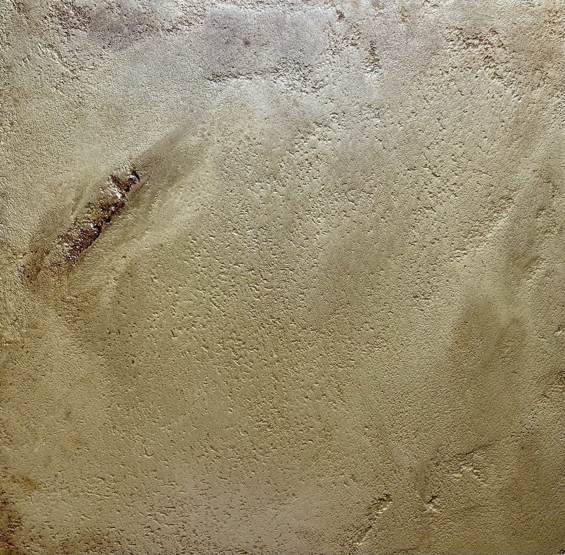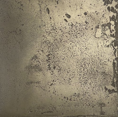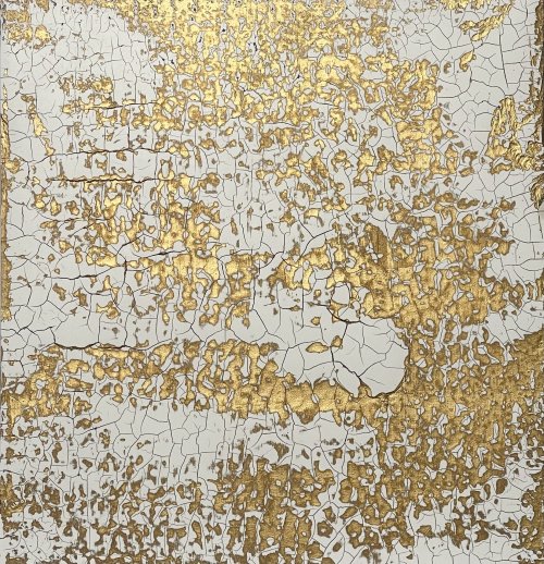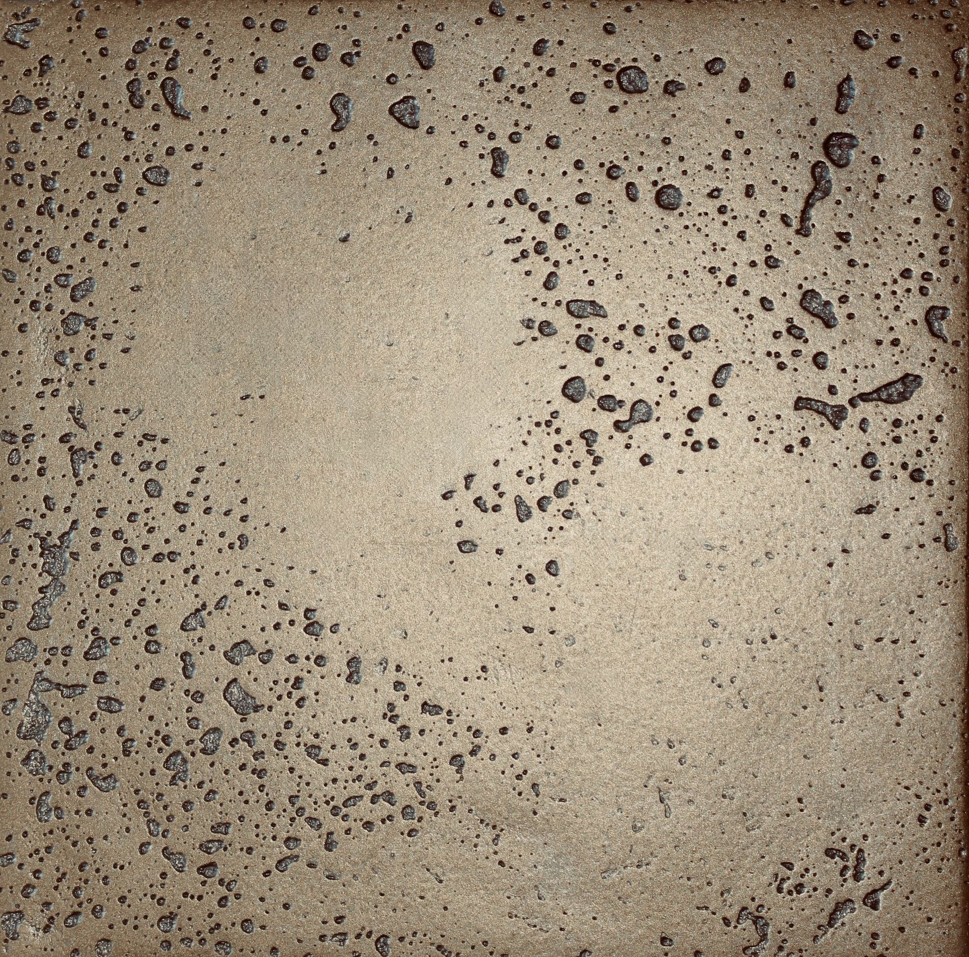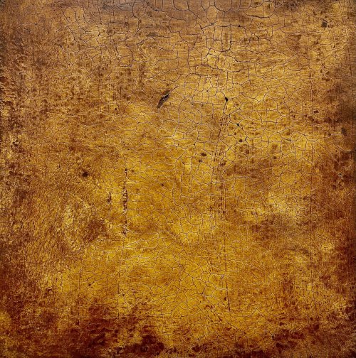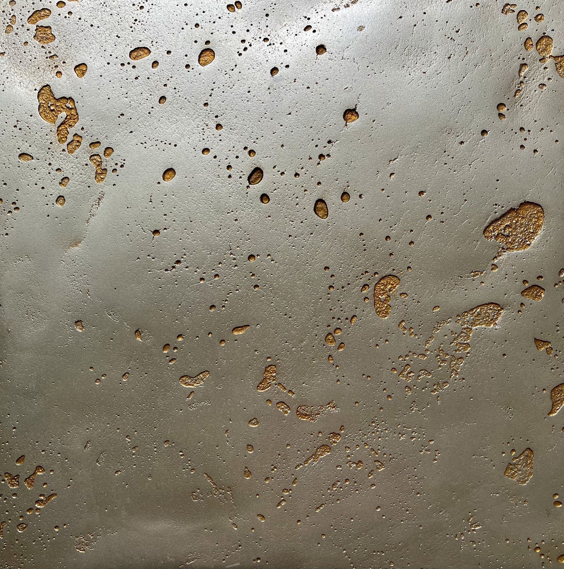 Die durch Risse und Brüche unwillkürlich entstandene Oberfläche entwickelt zusammen mit den darauf applizierten Farbschichten Oberflächenmuster, die einzigartiger nicht sein können.