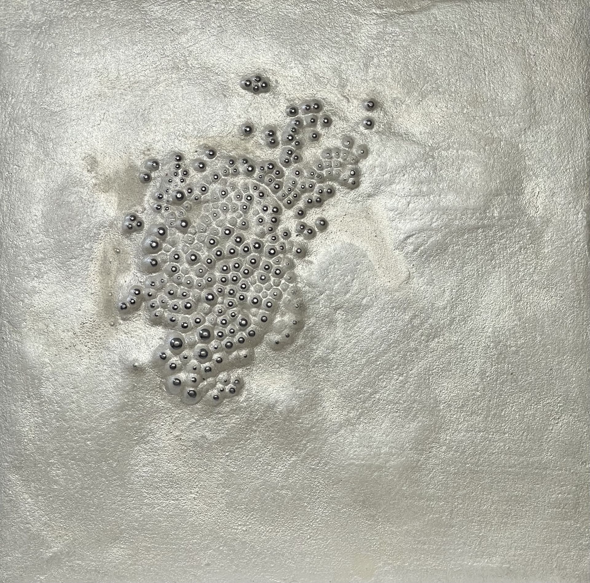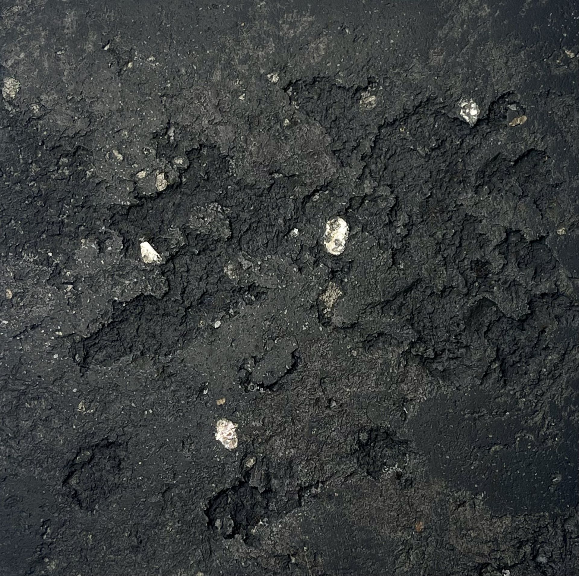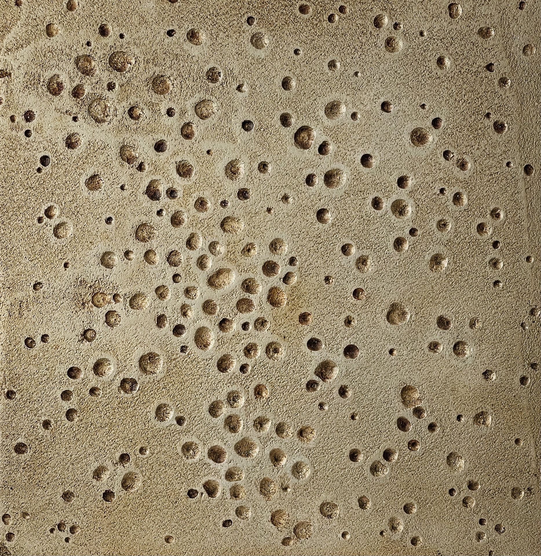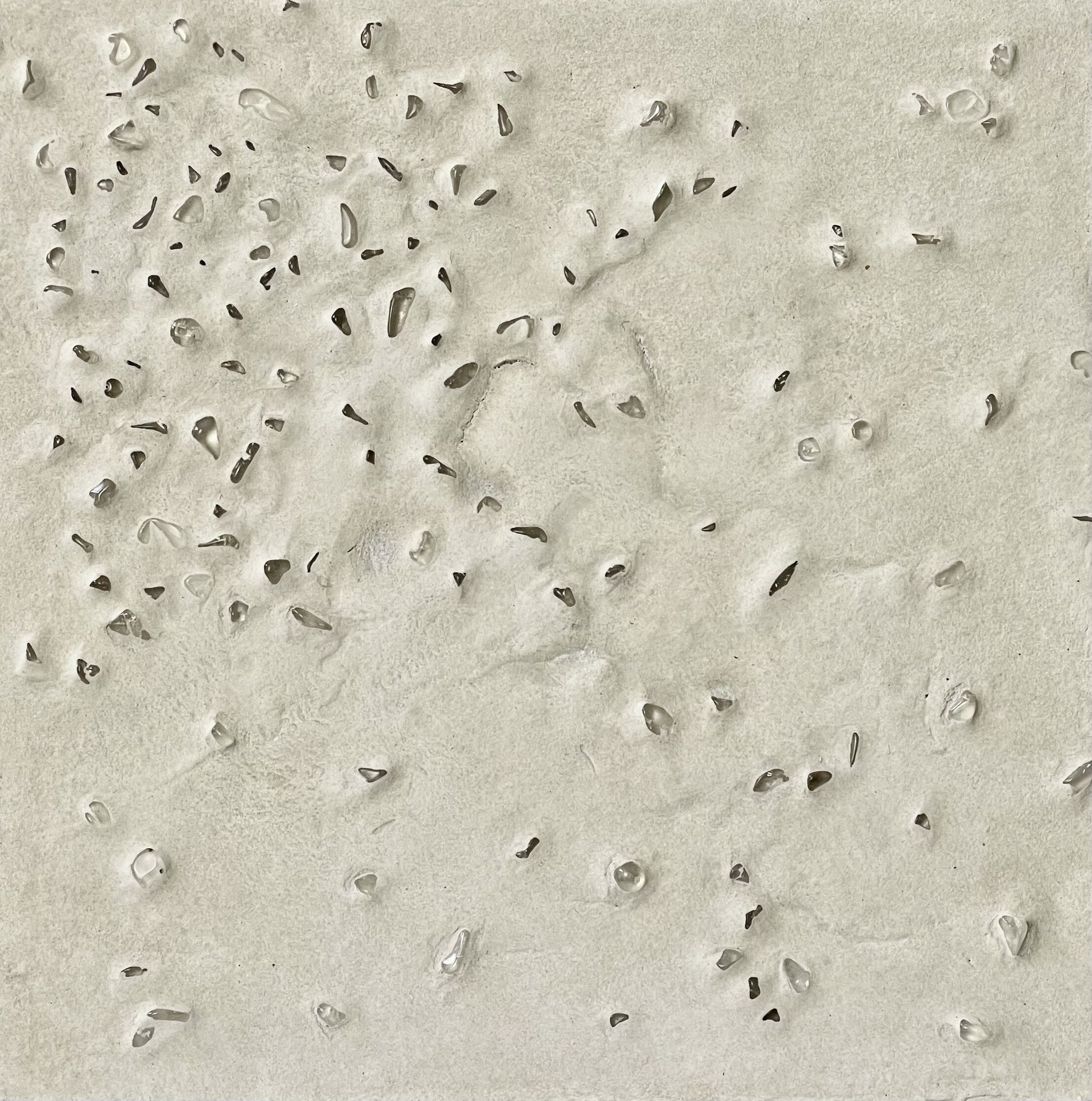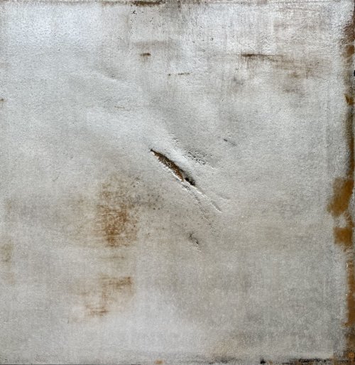 Die durch Risse und Brüche unwillkürlich entstandene Oberfläche entwickelt zusammen mit den darauf applizierten Farbschichten Oberflächenmuster, die einzigartiger nicht sein können.