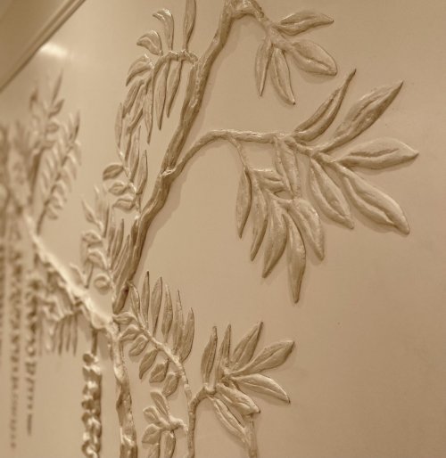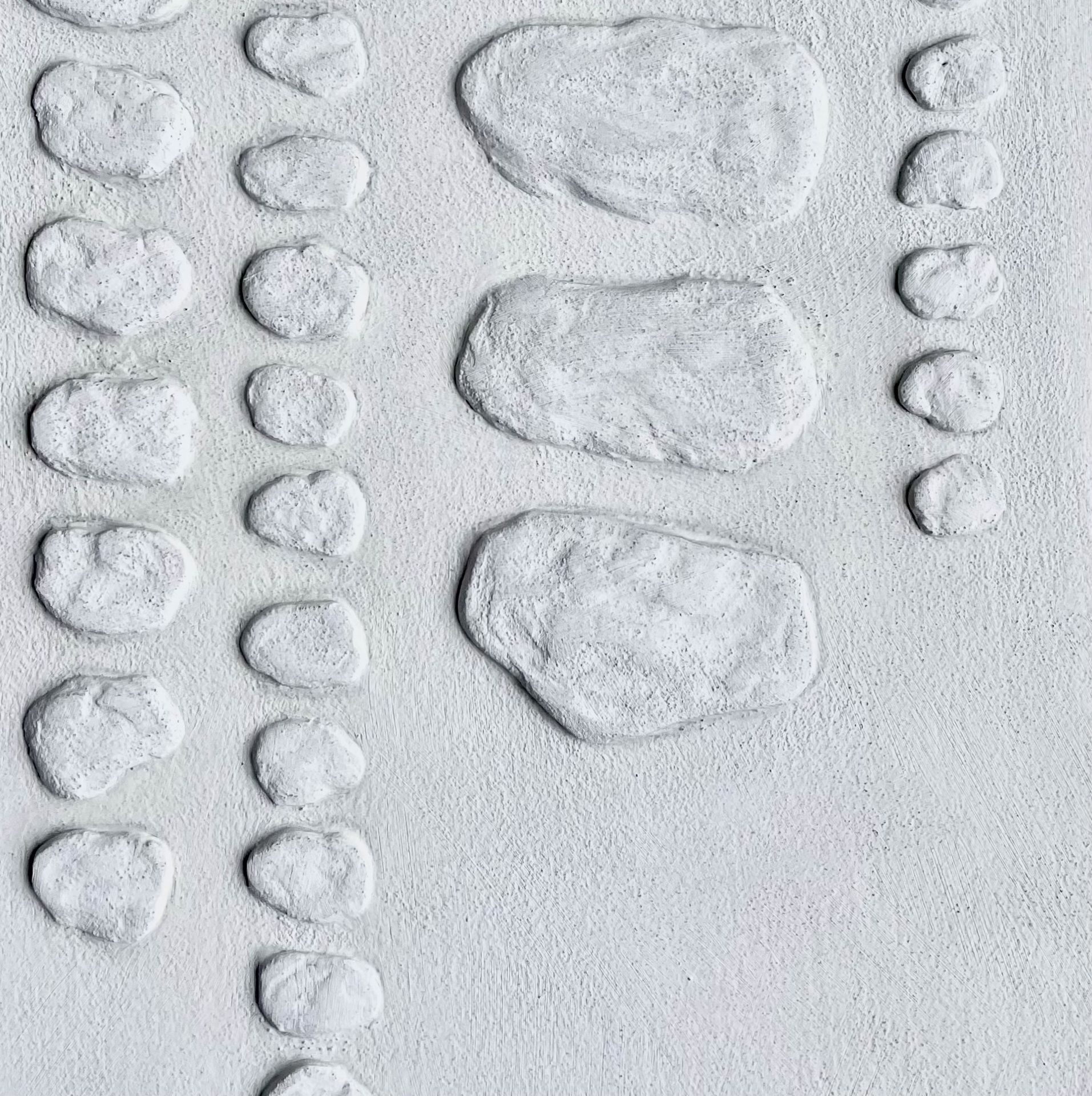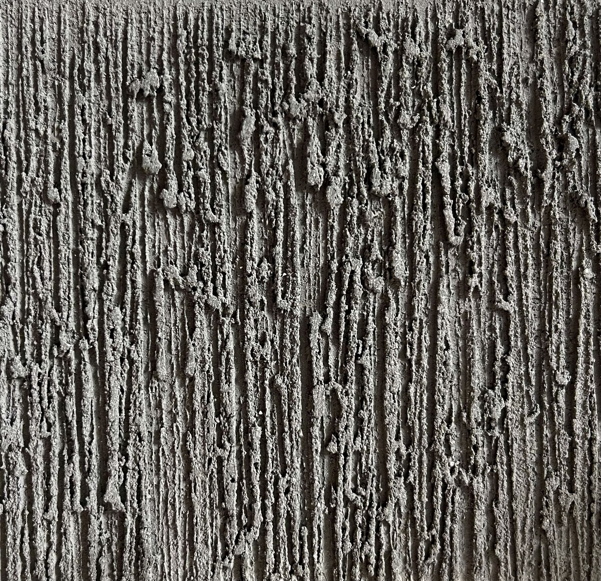 Diese Form der Gestaltung lässt durch Materialzusammensetzung und Auftragsstärke eine Oberflächentextur entstehen, die handgemacht und natürlich wirkt, mit dem Anspruch eine relativ exakte, geometrische Ausrichtung zum Ziel zu haben.